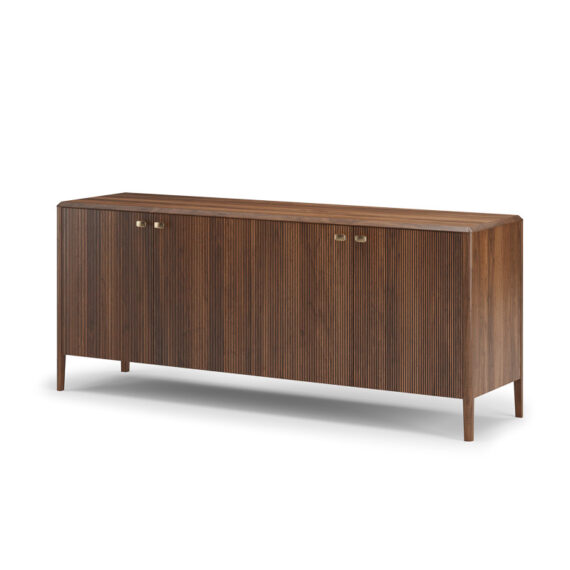 The Lily Buffet contains many features that make it a unique and beautiful storage piece. The front textured wooden doors, mounted on soft-close mechanisms, open to reveal the interior adjustable shelves and motion sensor LED lights. The wooden top contains a “power dot” wireless mobile phone charger, and the back of the console includes a cable management system. The solid wood legs also feature adjustable levelers under each leg.